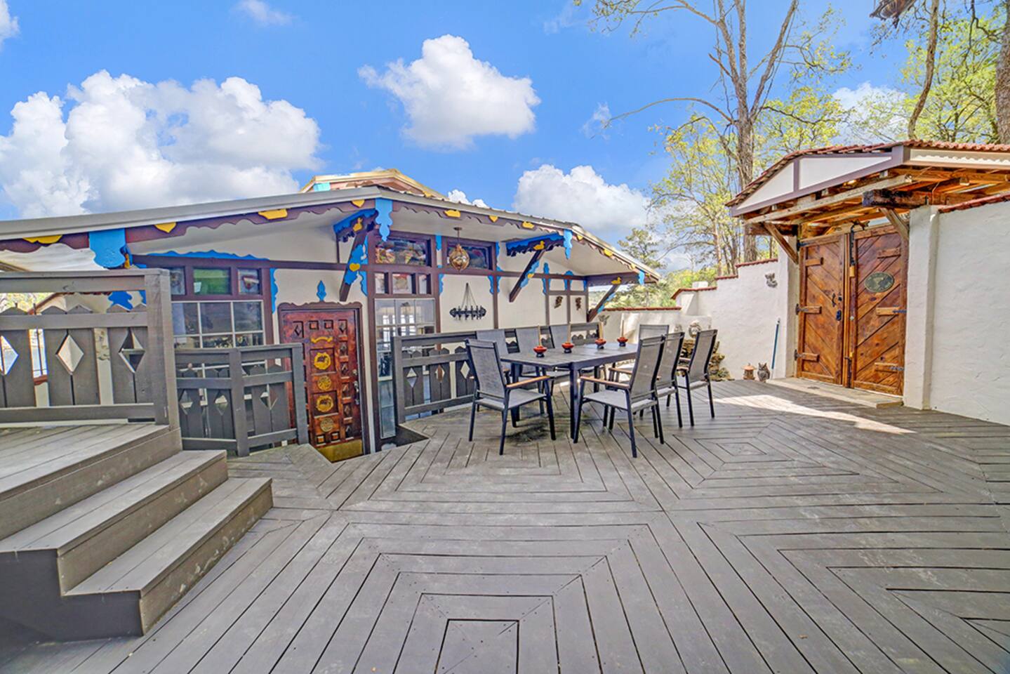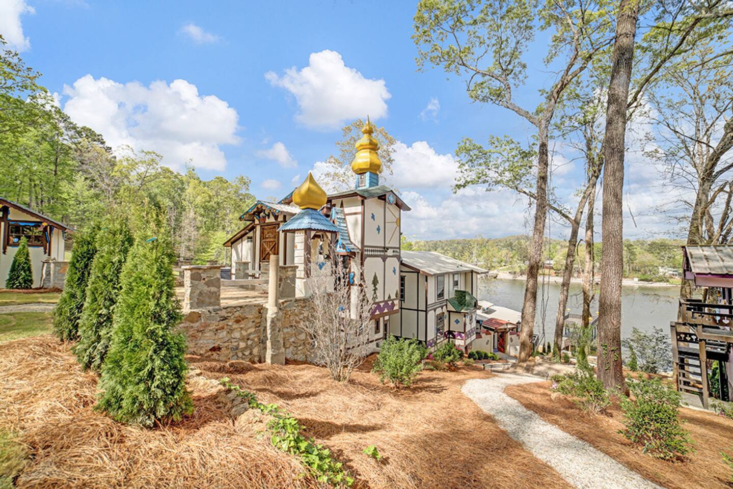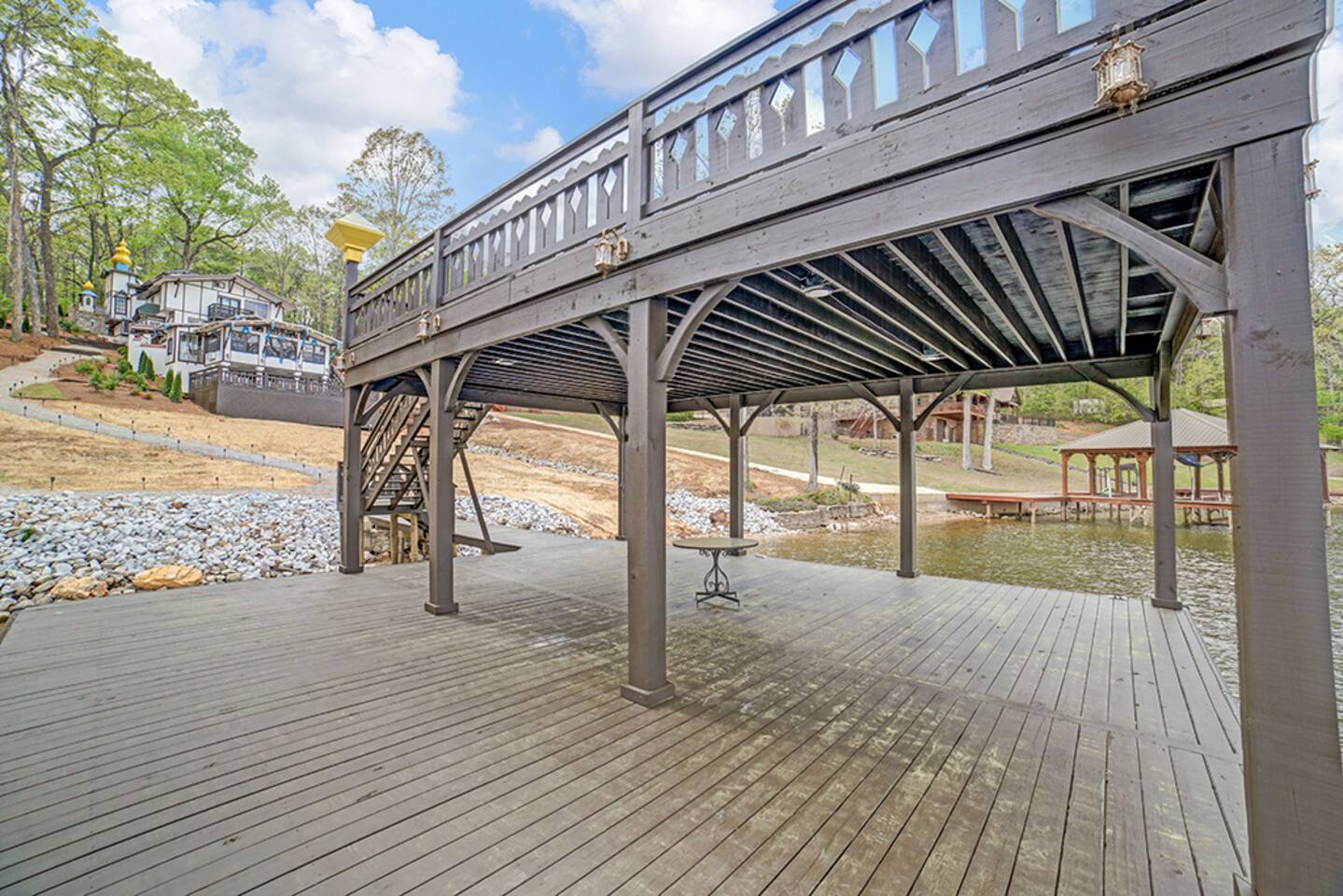 To start you off, we provide a small amount of dish soap, dishwashing detergent, paper towels, toilet paper, laundry detergent, shampoo, conditioner, and body wash. Please plan to purchase more for extended stays. We also provide plenty of pool towels for you to use at the lake. Please bring your favorite lake float/life jacket/ etc. *Please note* Hartman Castle is a unique property with stairs, balconies, stone surfaces, and waterfront access, and an open drawbridge. To ensure everyone has an enjoyable and safe stay, please keep a close eye on any children in your party throughout your visit, as these features require extra attention. By booking with us, guests acknowledge the property's characteristics and agree to supervise children appropriately during their stay. The castle is not handicap accessible.