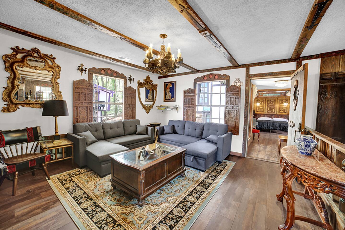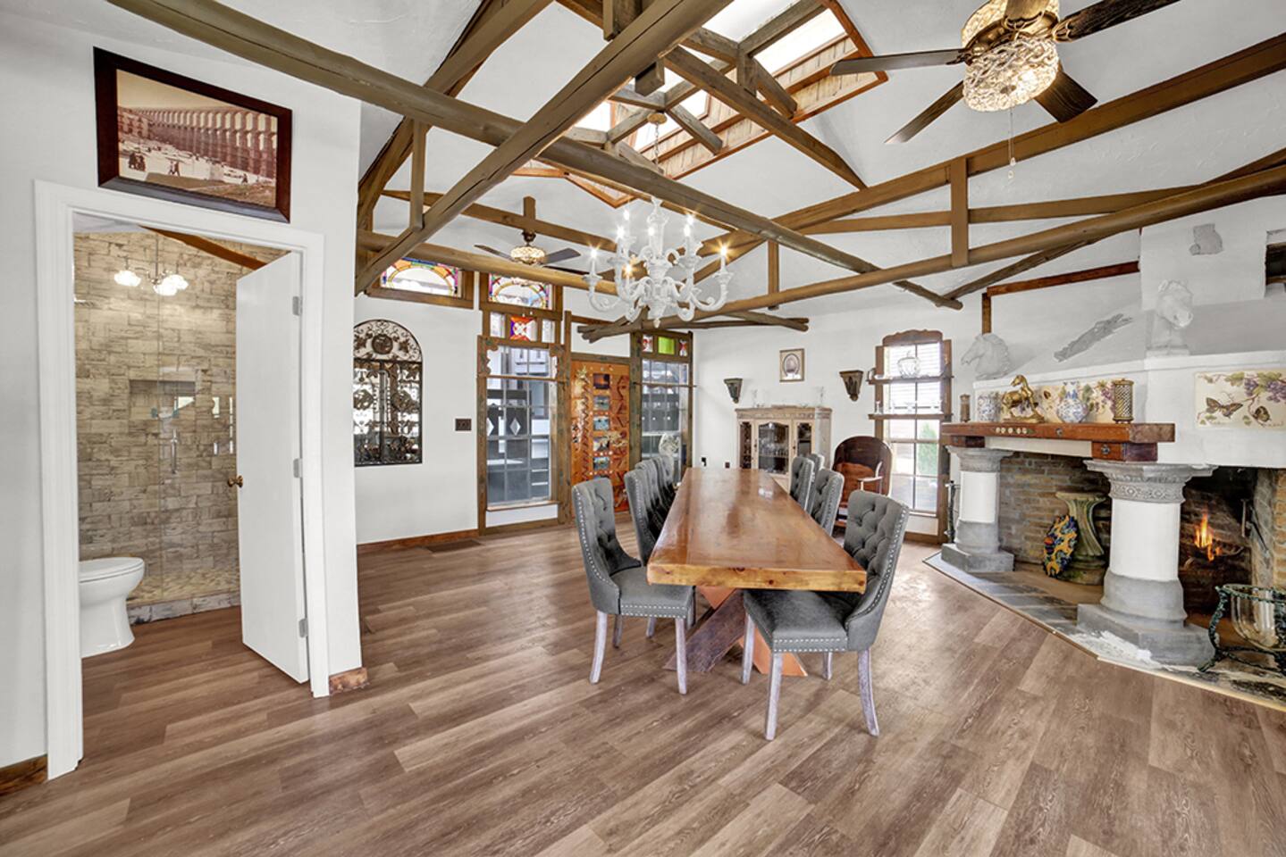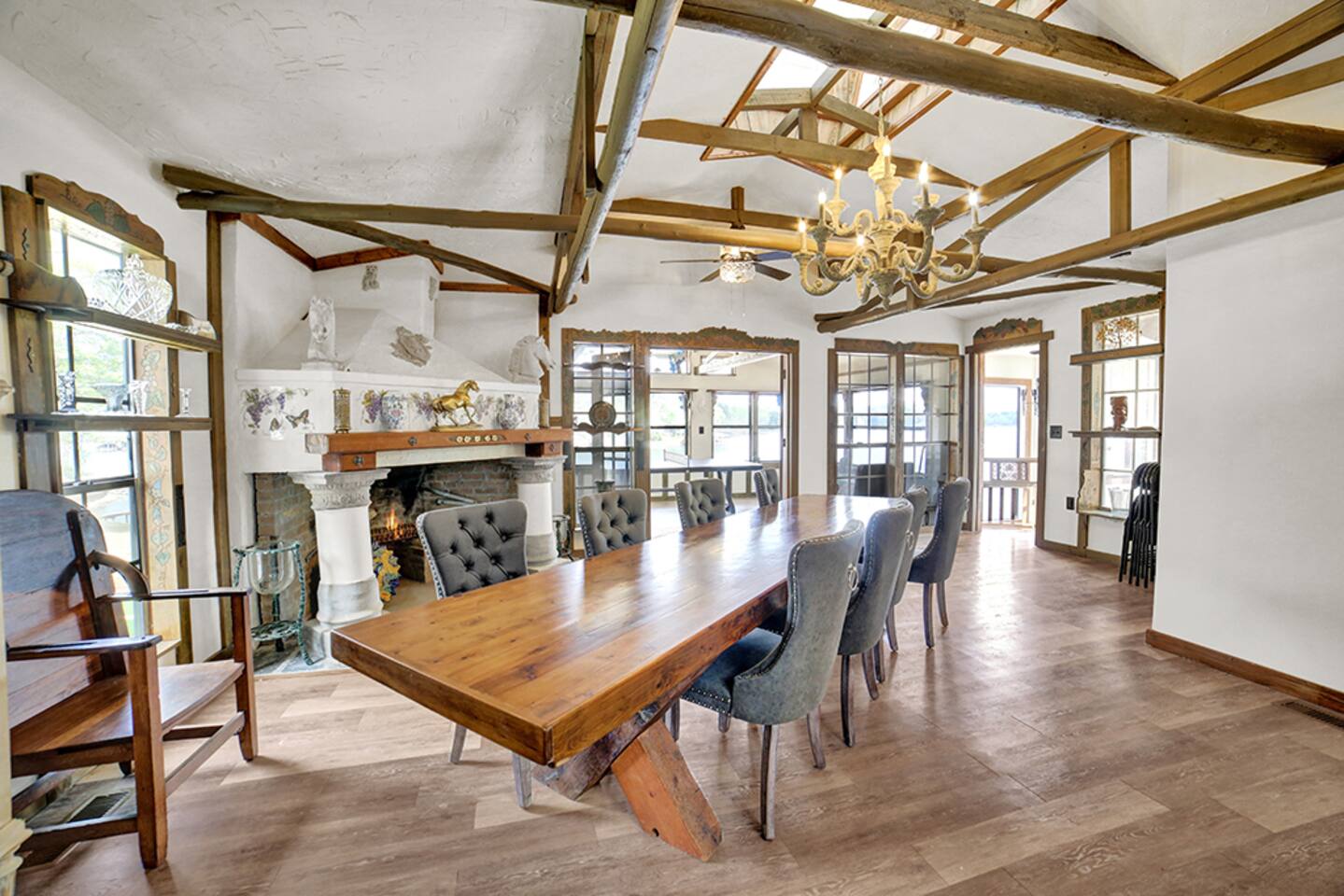 To start you off, we provide a small amount of dish soap, dishwashing detergent, paper towels, toilet paper, laundry detergent, shampoo, conditioner, and body wash. Please plan to purchase more for extended stays. We also provide plenty of pool towels for you to use at the lake. Please bring your favorite lake float/life jacket/ etc. *Please note* Hartman Castle is a unique property with stairs, balconies, stone surfaces, and waterfront access, and an open drawbridge. To ensure everyone has an enjoyable and safe stay, please keep a close eye on any children in your party throughout your visit, as these features require extra attention. By booking with us, guests acknowledge the property's characteristics and agree to supervise children appropriately during their stay. The castle is not handicap accessible.