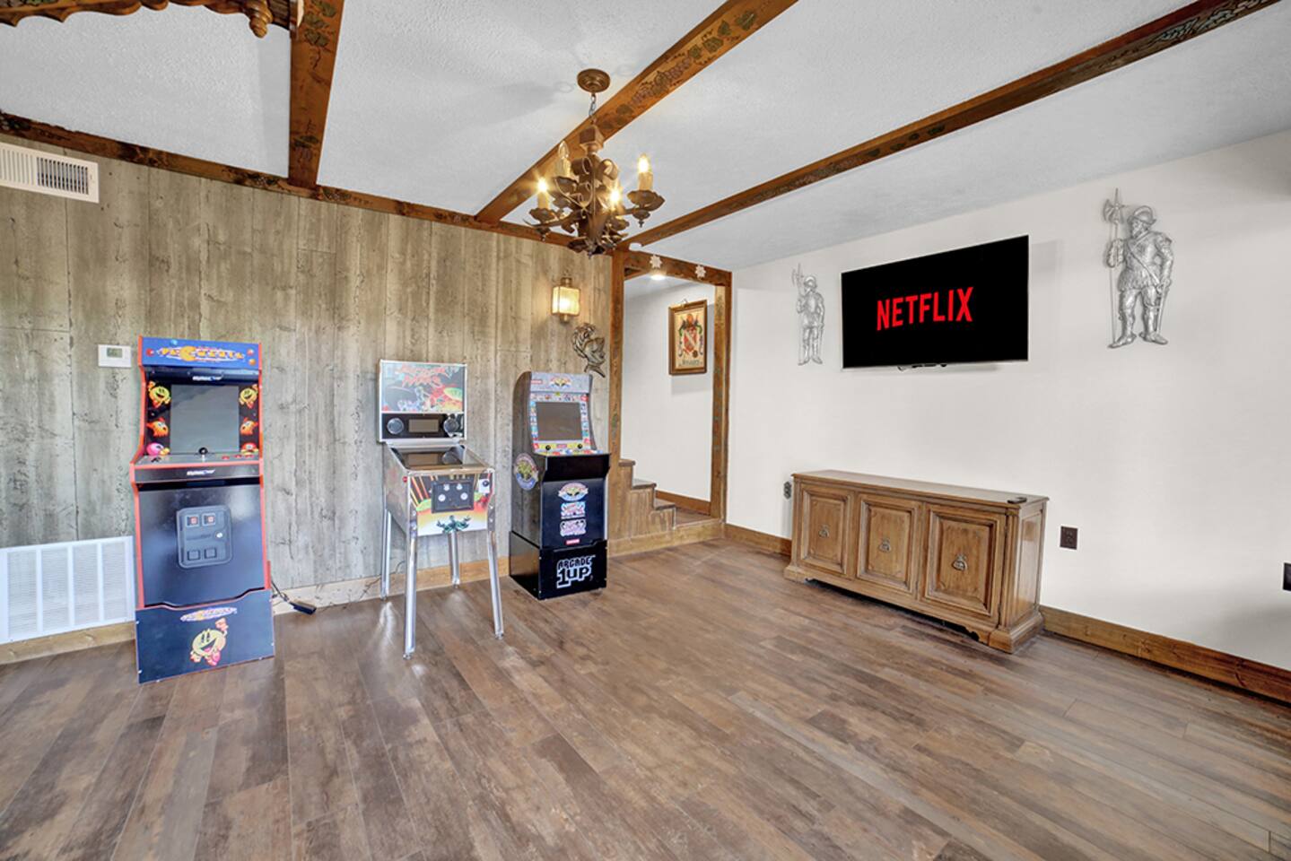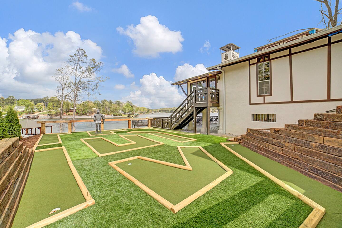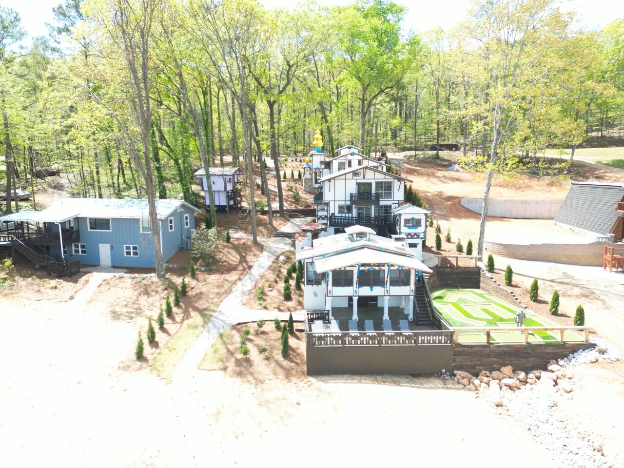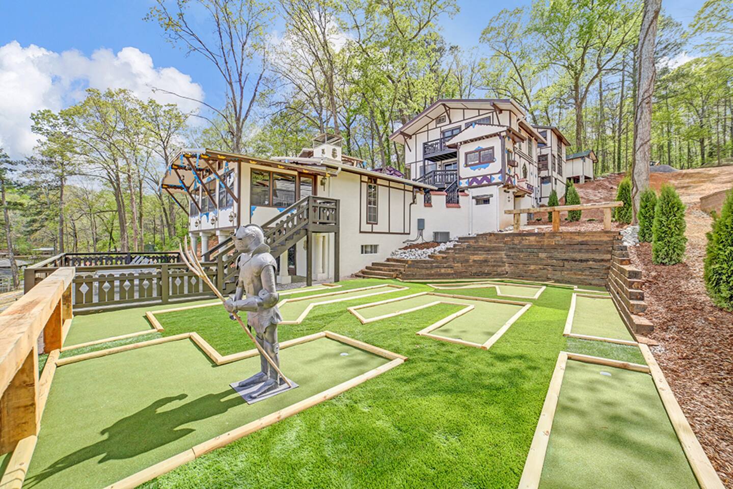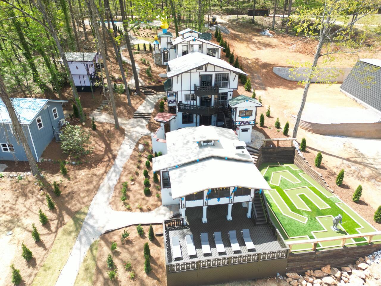 Welcome to the one and only Hartman Castle! Awesome amenities: 9-holes of mini golf, arcade games, ping pong, pickleball, and 2 party decks. Perfect for big groups: 2 King, 3 Queen, 2 Full, and 3 Twin beds, plus 3 Queen size pull-out couches and a sleeper sofa. Sleeps up to 24. If more space is needed, you can also rent the Lake Cottage next door: http://airbnb.com/h/AlpineLakeCottage